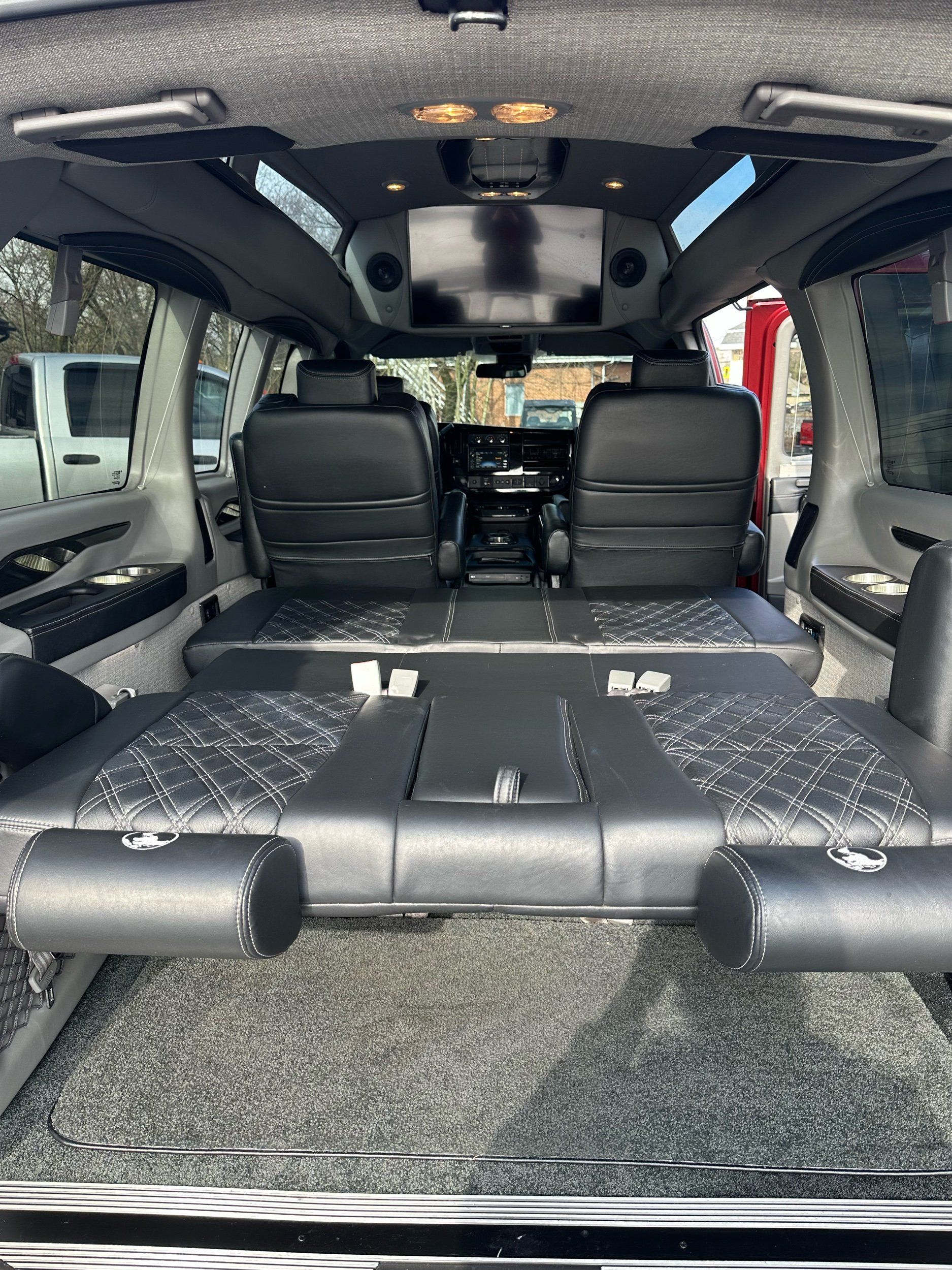 Third-row seatback upholstery: Carpet third-row seatback upholstery